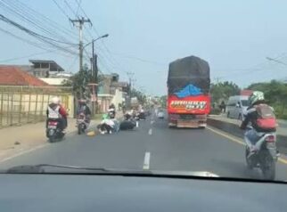 Pemudik Motor Terjatuh di Karawang Diduga Akibat Oli Tumpah di Jalan