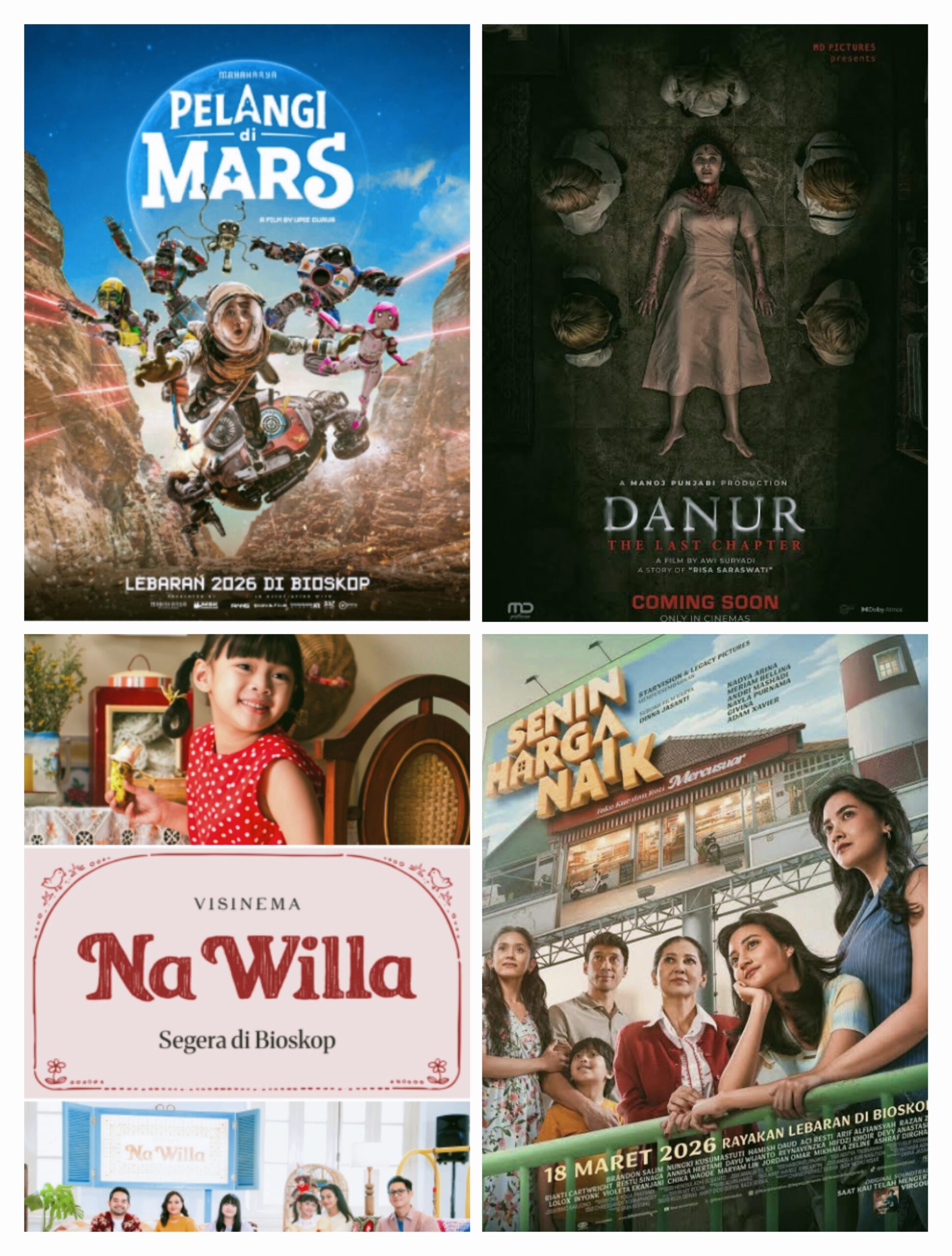 Diadaptasi dari novel karya Reda Gaudiamo. Berlatar Surabaya tahun 1960-an, film ini mengikuti kehidupan Willa, gadis kecil multikultural yang melihat dunia dengan kepolosan dan rasa ingin tahu besar. - Senin Harga Naik (Tayang 18 Maret 2026)