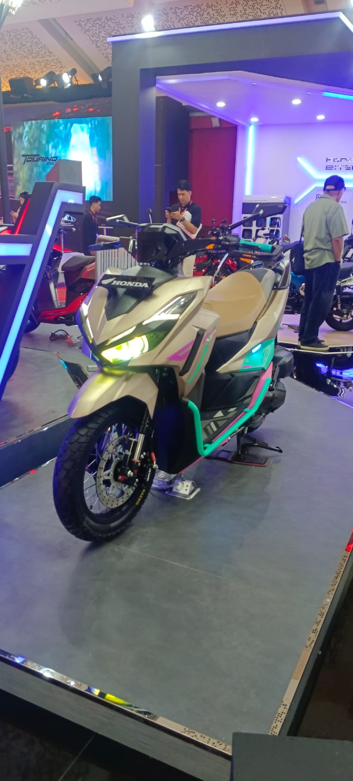 Selain itu, Honda ajuga memiliki lini ADV 160 sebagai pilihan narik petualang, meskipun dibanderol dengan harga yang lebih tinggi yakni Rp 42,8 juta untuk tipe reguler, menunjukkan variasi pilihan matik yang tersedia di booth mereka.