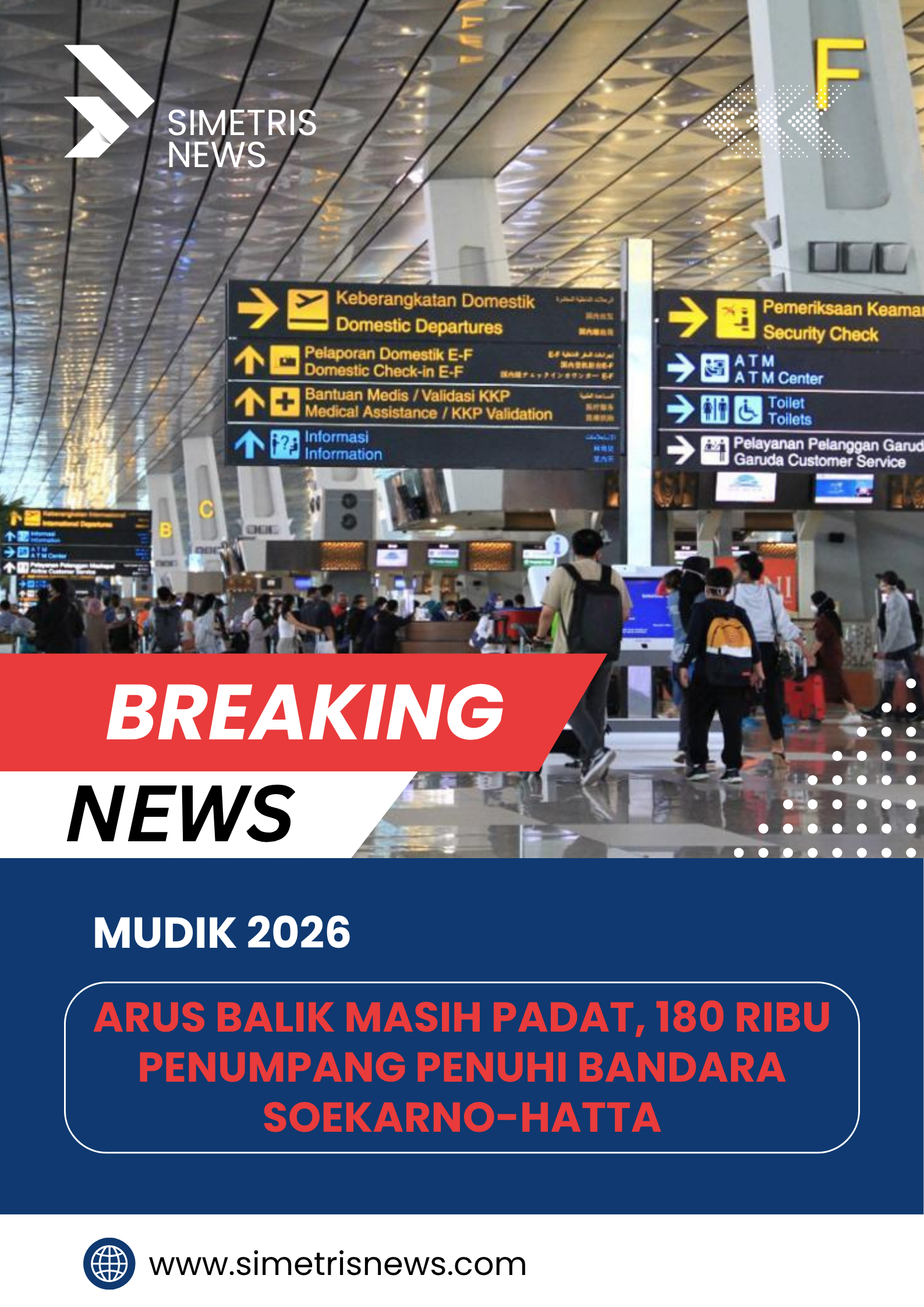 Simetrisnews – Empat hari setelah Lebaran, arus balik di Bandara Soekarno-Hatta masih menunjukkan kepadatan tinggi.