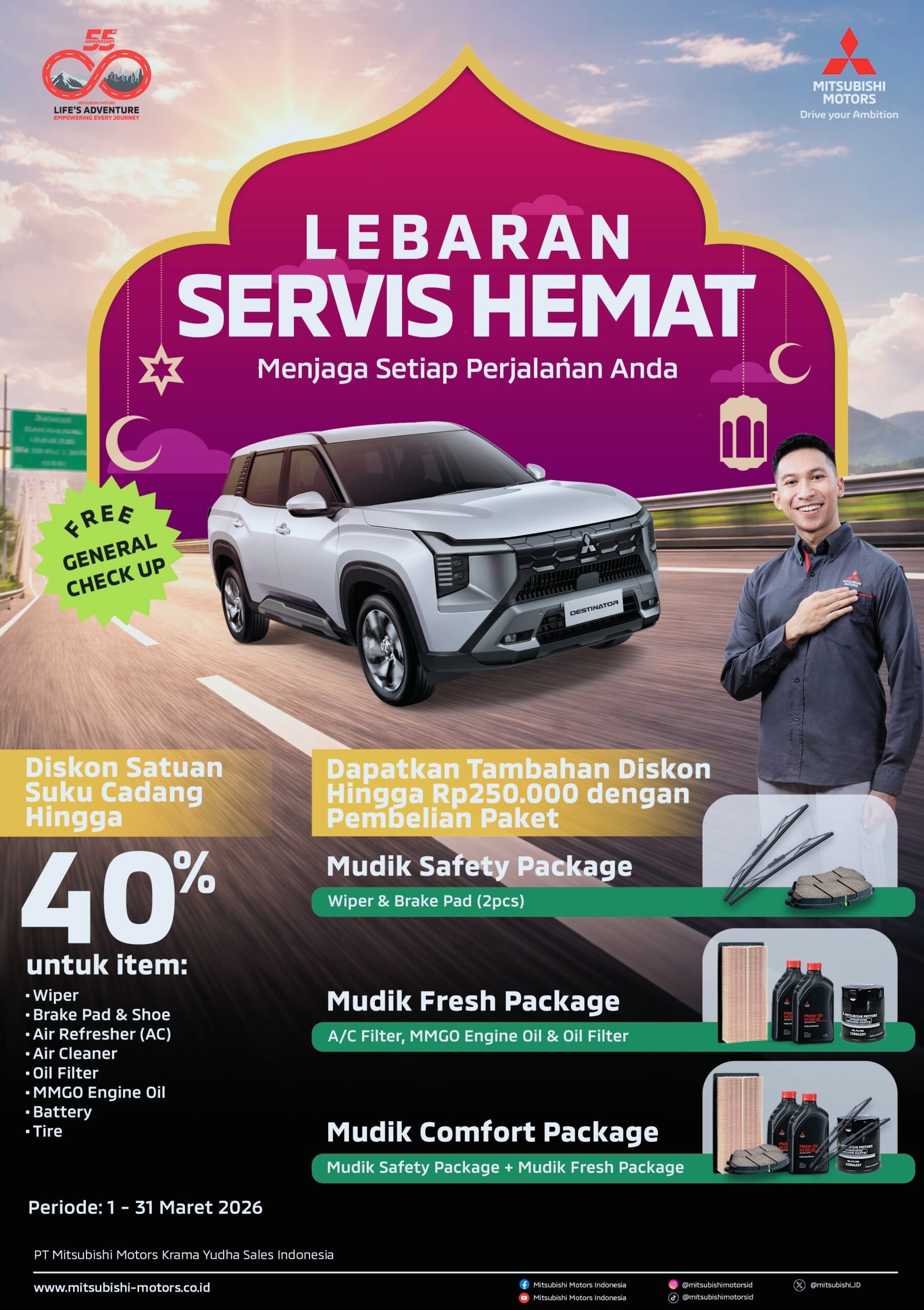 Simetrisnews – Menyambut momen mudik Lebaran 2026, PT Mitsubishi Motors Krama Yudha Sales Indonesia (MMKSI) resmi menghadirkan program purna jual bertajuk “Lebaran Campaign 2026”.