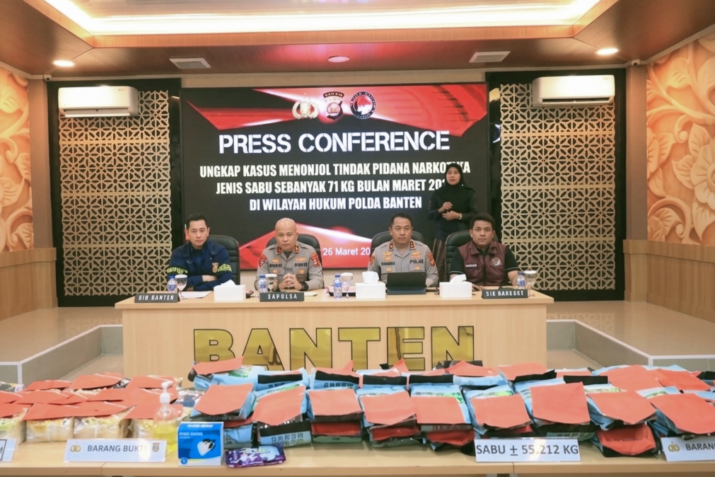 Simetrisnews – Polda Banten menggagalkan peredaran narkotika jenis sabu sepanjang Maret 2026. Tiga pelaku ditangkap dalam dua pengungkapan kasus berbeda dengan total barang bukti mencapai 71 kilogram sabu.