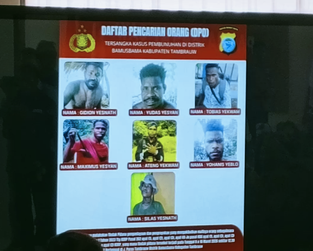 “Polres Tambrauw telah menetapkan 7 daftar pencarian orang atau DPO tersangka kasus pembunuhan di Distrik Bamusbama, Tambrauw,” ujarnya saat konferensi pers di Mapolda Papua Barat Daya.
